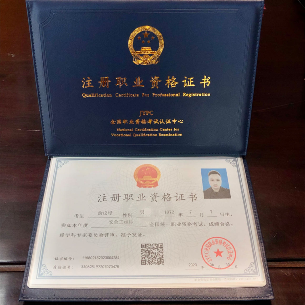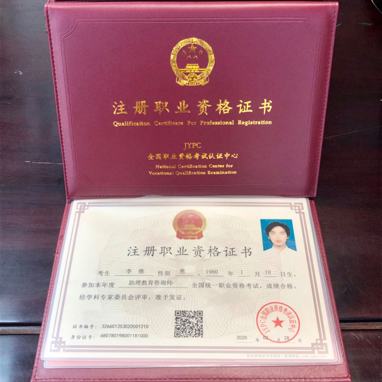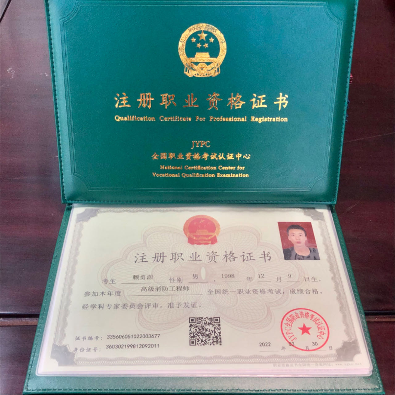注册职业资格证书高级证书样本
